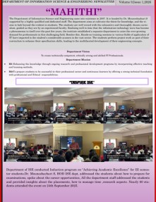 The Department of Information Science and Engineering was established in 2007 and offers a Bachelor of Engineering Program. Information Science's primary aim is to converge the knowledge about the design, development and implementation of various solutions to collect, store, and categorise information. Being an interdisciplinary field, it combines the knowledge of different domains, including mathematics, computer science, social science, management, etc. The students learn the processing and interpretation of raw data to make use of them for productive purposes. The course equips the students with the right knowledge to design, develop, test, and maintain a software system and at the same time handle real-time situations.