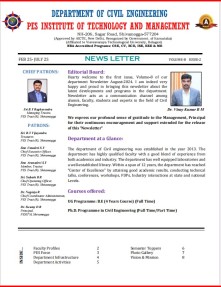 The Department of Civil Engineering at PESITM has been recognized as a research center by the affiliating university in the year 2018. Research scholars of Department of Civil Engineering & Research Scholars at PESITM research center are focusing on following research areas.