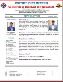 One of the right decisions I made was to join PESITM for my graduation.Civil Engineering is rightly considered the most versatile amongst all engineering branches.The Department’s Vision is to give more exposure to budding civil technocrats to various challenges in the profession having a highly qualified and experienced faculty.