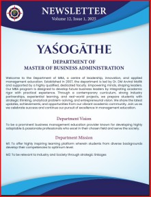 The Department of MBA was established in 2008 and sets the tone for management education in the State of Karnataka and carved out as a niche course. The course offers an MBA with Core / Dual functional specialization (Finance / HR / Marketing / Business Analytics) and a doctoral research programme. The learning environment is infused with creativity and contemporary pedagogy. The students are groomed for industry readiness and students get excellent placement opportunities every year. A program approved by AICTE, New Delhi and affiliated with Visvesvaraya Technological University, Belagavi. The department attracts MBA aspirants from diverse cultural and educational backgrounds every year.
