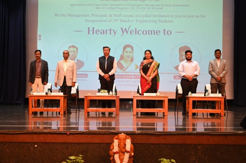 PESITM Shishyopanayana Event was inaugurated by Prof. Mahadeva Prasanna, Director, IIIT Dharwad, Chief Guest, along with Smt. Arunadevi S Y, Trustee, PES Trust (R) and Director, Jan Shikshan Sansthan, Mr. Subash BR, COO,PES Trust, Dr. Nagaraja R, CCA, PES Trust, Dr.Swamy D R, Principal, PESITM, Dr.R.Sekar, Vice Principal, PESITM, at Prerana Convention Hall.
